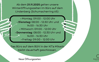 Während der Öffnungszeiten sind wir in unserem Büro Auf dem Lindenberg.